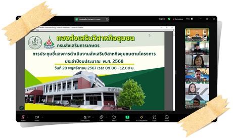 เมื่อวันที่ 11-12 ธันวาคม 2567 นายอิสระ บุญเย็น นักวิชาการส่งเสริมการเกษตรชำนาญการ เข้าร่วมการอบรมพัฒนาทักษะนายทะเบียนวิสาหกิจชุมชน ประจำปีงบประมาณ พ.ศ. 2568 ผ่านระบบออนไลน์ (Zoom Meeting) โดยมีนายรพีทัศน์ อุ่นจิตตพันธ์ รองอธิบดีกรมส่งเสริมการเกษตร เป็นประธานฯ