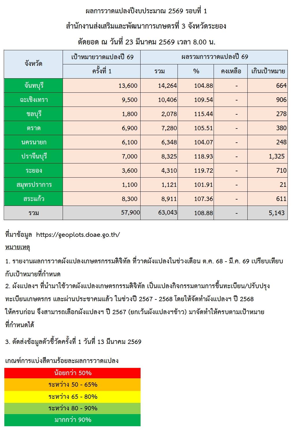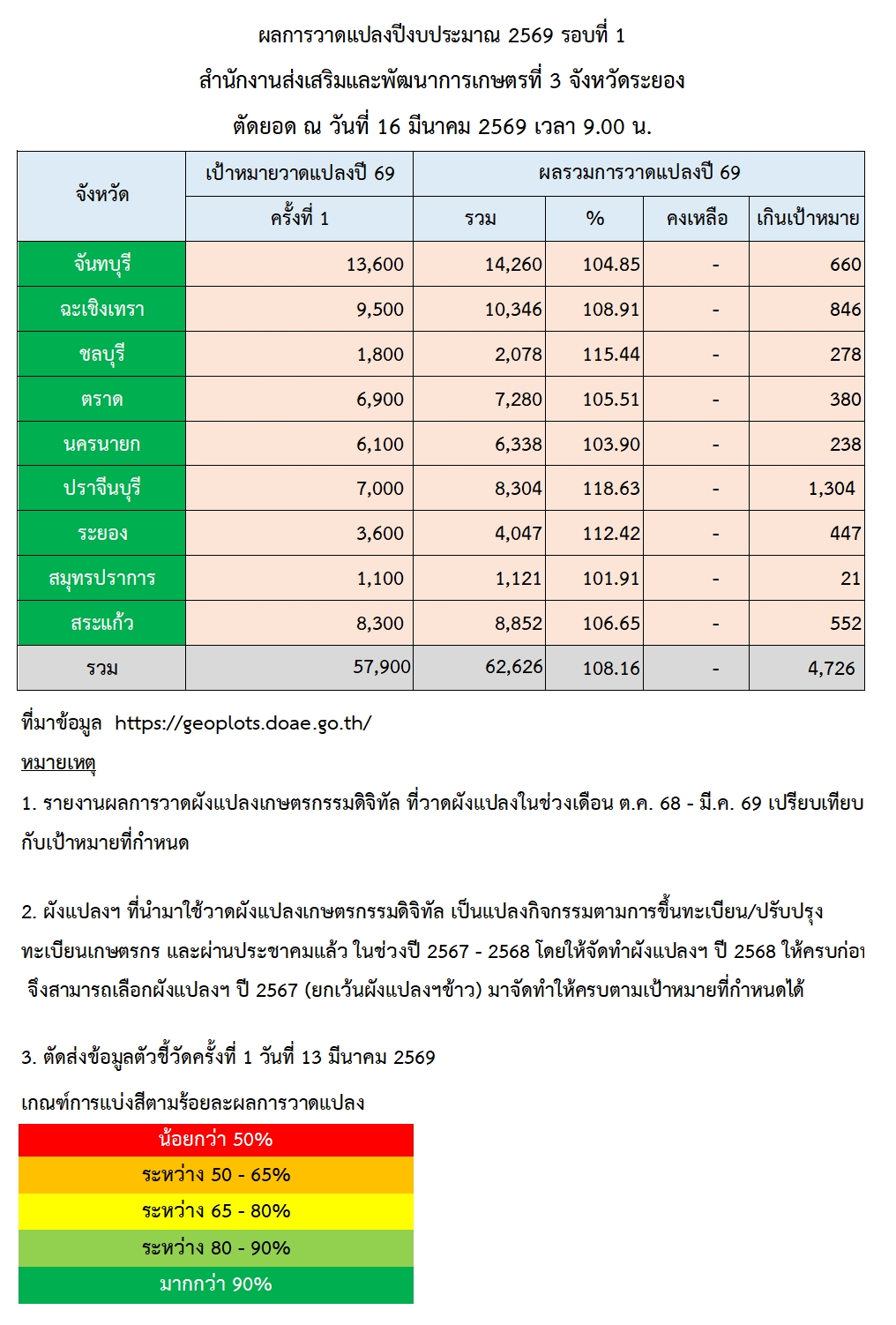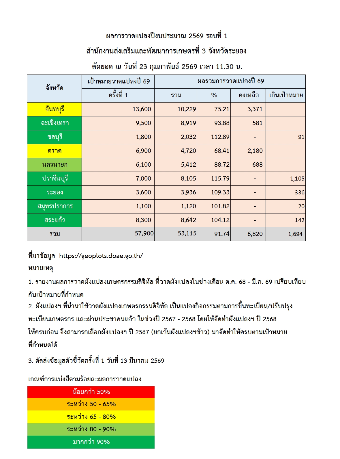 ผลการวาดแปลง ภาคตะวันออก ปี 2569