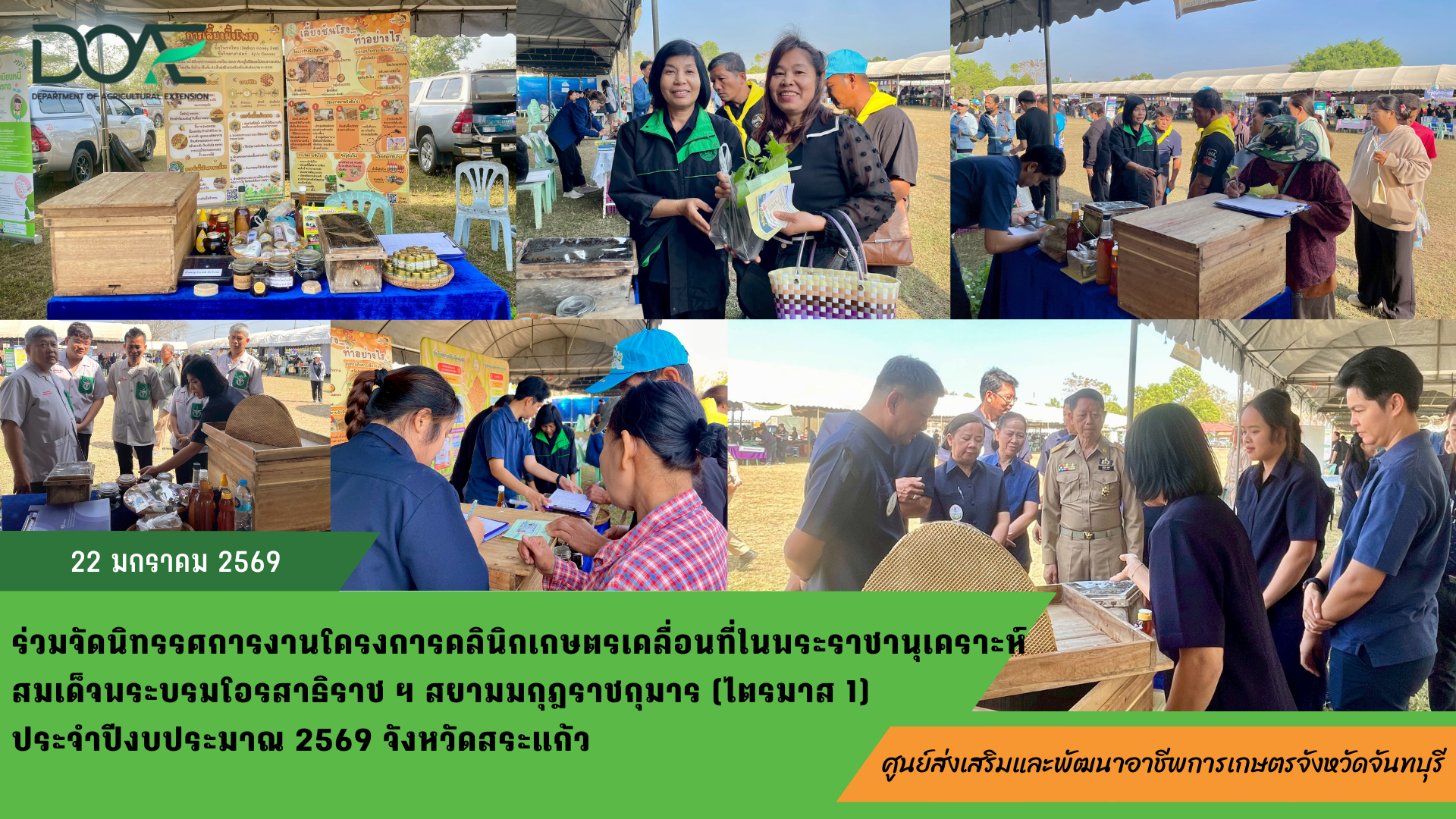 ร่วมจัดนิทรรศการงานโครงการคลินิกเกษตรเคลื่อนที่ในพระราชานุเคราะห์ สมเด็จพระบรมโอรสาธิราช ฯ สยามมกุฎราชกุมาร (ไตรมาส 1) ประจำปีงบประมาณ 2569 จังหวัดสระแก้ว22 มกราคม 2026
