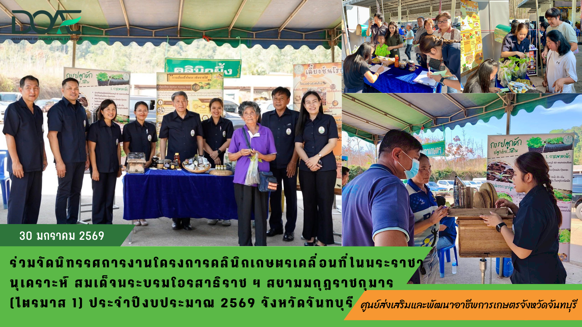 ร่วมจัดนิทรรศการงานโครงการคลินิกเกษตรเคลื่อนที่ในพระราชานุเคราะห์ สมเด็จพระบรมโอรสาธิราช ฯ สยามมกุฎราชกุมาร (ไตรมาส 1) ประจำปีงบประมาณ 2569 จังหวัดจันทบุรี30 มกราคม 2026