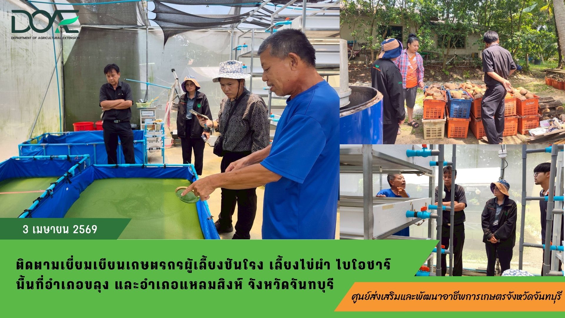 ติดตามเยี่ยมเยียนเกษตรกรผู้เลี้ยงชันโรง เลี้ยงไข่ผำ ไบโอชาร์ พื้นที่อำเภอขลุง และอำเภอแหลมสิงห์ จังหวัดจันทบุรี3 เมษายน 2026