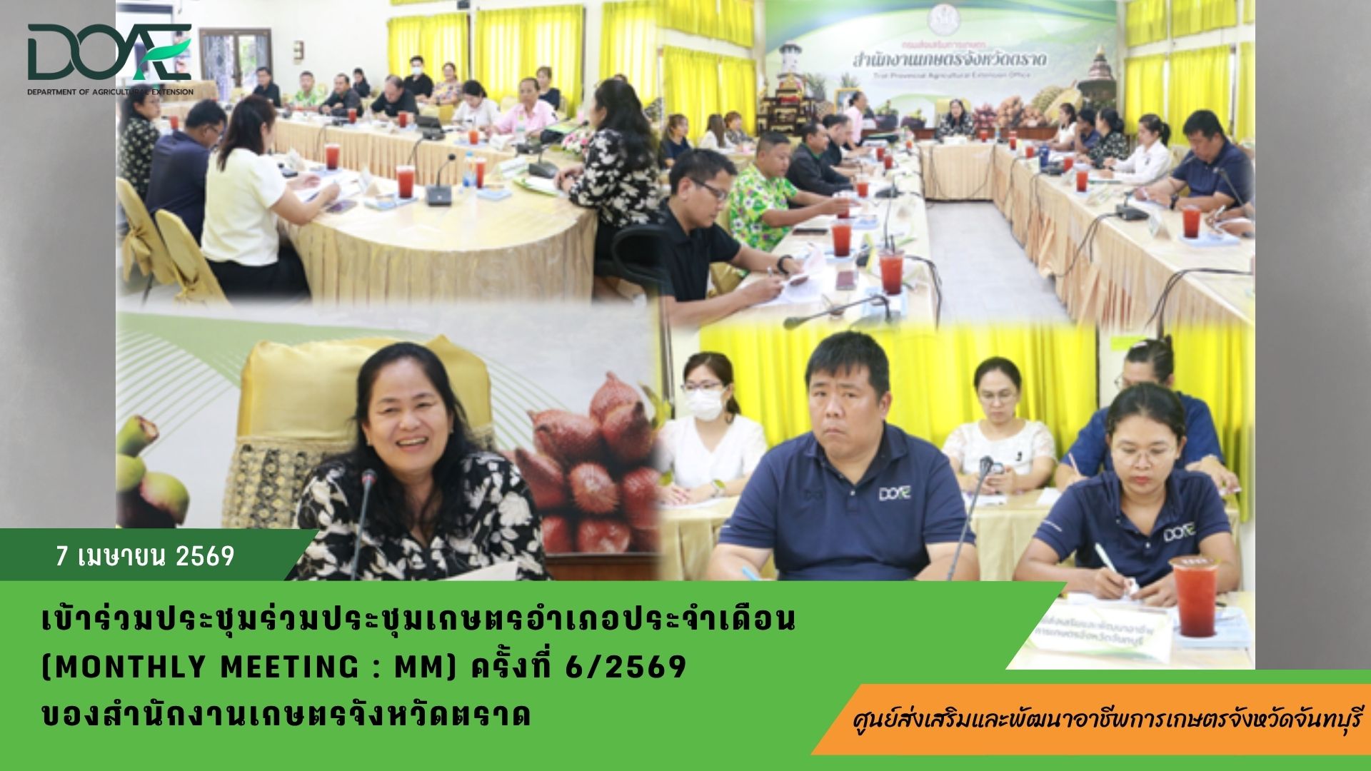 เข้าร่วมประชุมร่วมประชุมเกษตรอำเภอประจำเดือน (Monthly Meeting : MM) ครั้งที่ 6/2569 ของสำนักงานเกษตรจังหวัดตราด7 เมษายน 2026