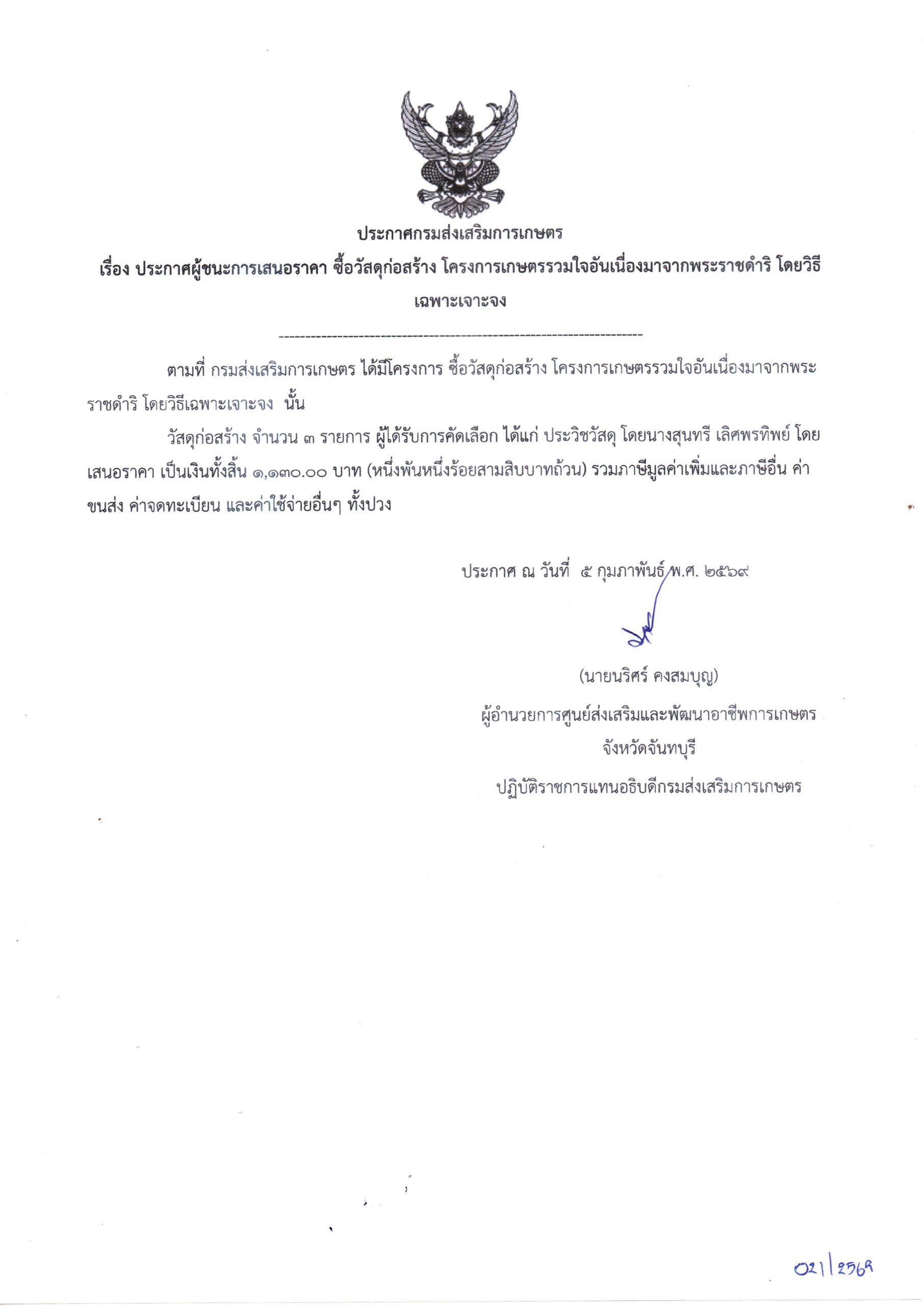 จัดซื้อวัสดุก่อสร้าง โครงการเกษตรรวมใจอันเนื่องมาจากพระราชดำริ โดยวิธีเฉพาะเจาะจง เป็นเงิน 1,130.00 บาท5 กุมภาพันธ์ 2026