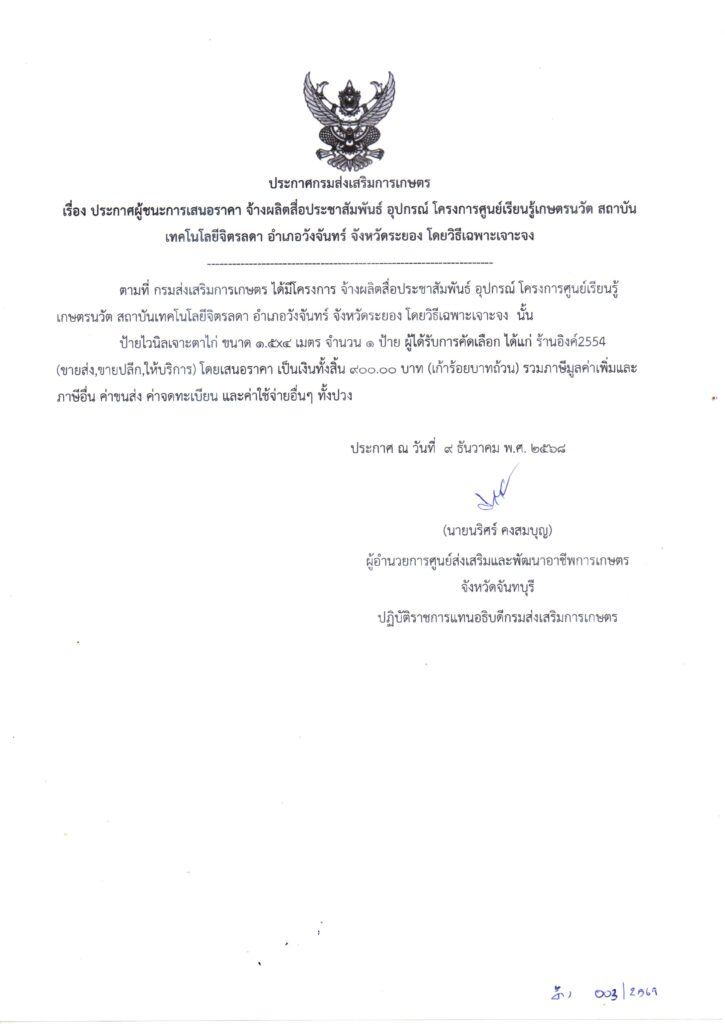 จัดจ้างผลิตสื่อประชาสัมพันธ์ โครงการเกษตรรวมใจอันเนื่องมาจากพระราชดำริ โดยวิธีเฉพาะเจาะจง เป็นเงิน 300.00 บาท