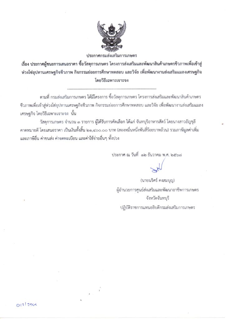 จัดซื้อวัสดุการเกษตร โครงการส่งเสริมและพัฒนาสินค้าเกษตรชีวภาพเพื่อเข้าสู่ห่วงโซ่อุปทานเศรษฐกิจชีวภาพ กิจกรรมเพิ่มประสิทธิภาพการผลิตแมลงเศรษฐกิจ กิจกรรมย่อยจัดทำแปลงขยายพันธุ์และรวบรวมพันธุ์แมลงเศรษฐกิจ โดยวิธีเฉพาะเจาะจง เป็นเงิน 3,600.00 บาท