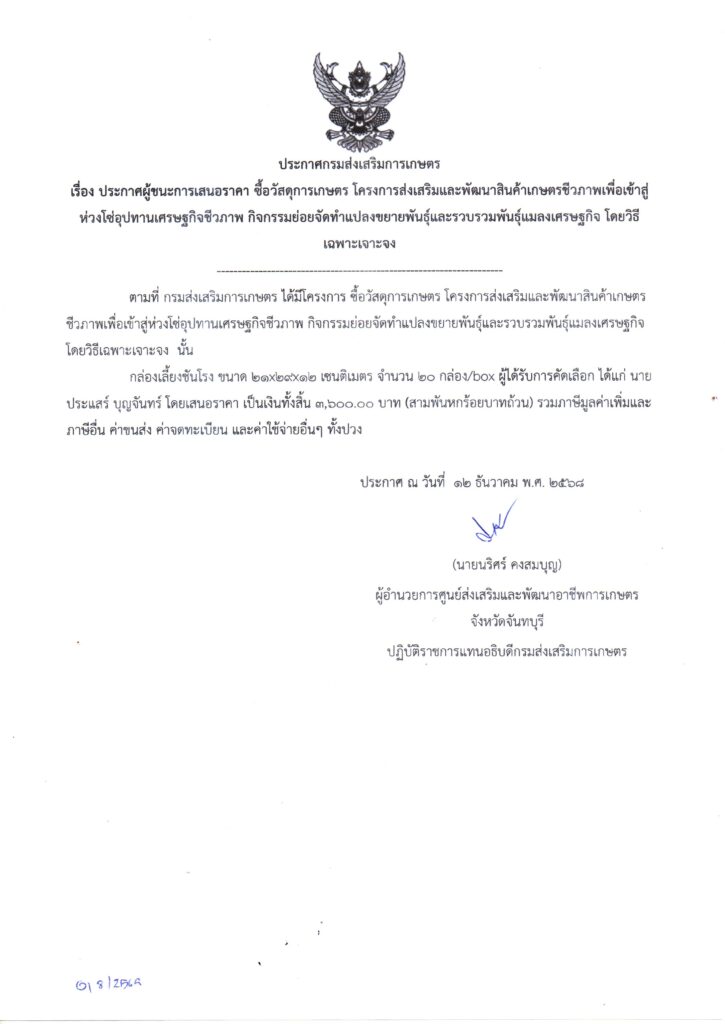 Previous จัดซื้อวัสดุการเกษตร โครงการส่งเสริมและพัฒนาสินค้าเกษตรชีวภาพเพื่อเข้าสู่ห่วงโซ่อุปทานเศรษฐกิจชีวภาพ กิจกรรมเพิ่มประสิทธิภาพการผลิตแมลงเศรษฐกิจ กิจกรรมย่อยการศึกษาทดสอบ วิจัย เพื่อพัฒนางานส่งเสริมแมลงเศรษฐกิจ โดยวิธีเฉพาะเจาะจง เป็นเงิน 21,400.00 บาท