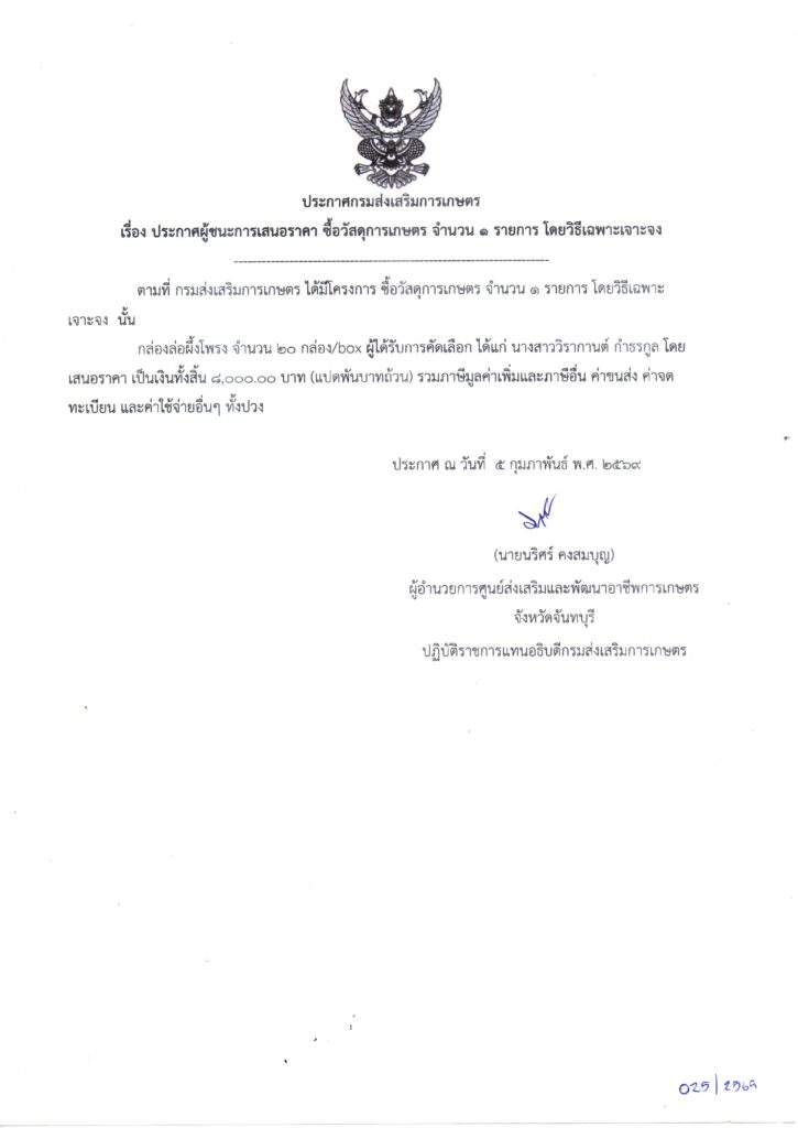 Next จัดซื้อวัสดุการเกษตร โครงการส่งเสริมและพัฒนาสินค้าเกษตรชีวภาพเพื่อเข้าสู่ห่วงโซ่อุปทานเศรษฐกิจชีวภาพ กิจกรรมเพิ่มประสิทธิภาพการผลิตแมลงเศรษฐกิจ กิจกรรมย่อยศึกษาทดสอบ วิจัย เพื่อพัฒนางานส่งเสริมแมลงเศรษฐกิจ โดยวิธีเฉพาะเจาะจง เป็นเงิน 1,300.00 บาท