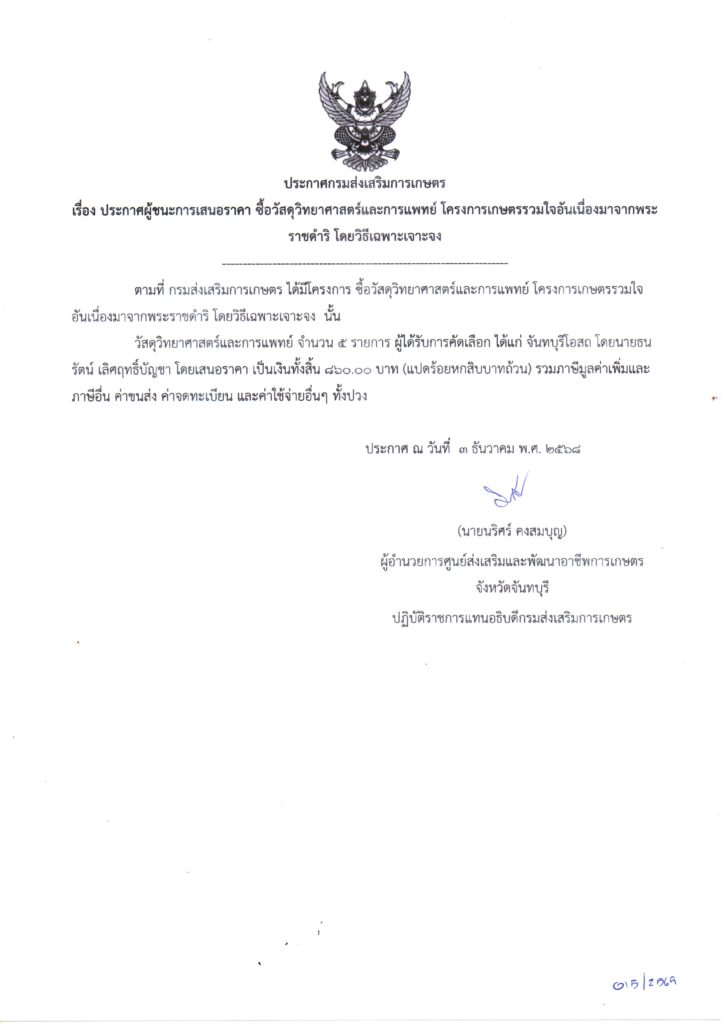 จัดซื้อวัสดุสำนักงาน โครงการเกษตรรวมใจอันเนื่องมาจากพระราชดำริ โดยวิธีเฉพาะเจาะจง เป็นเงิน 1,845.00 บาท