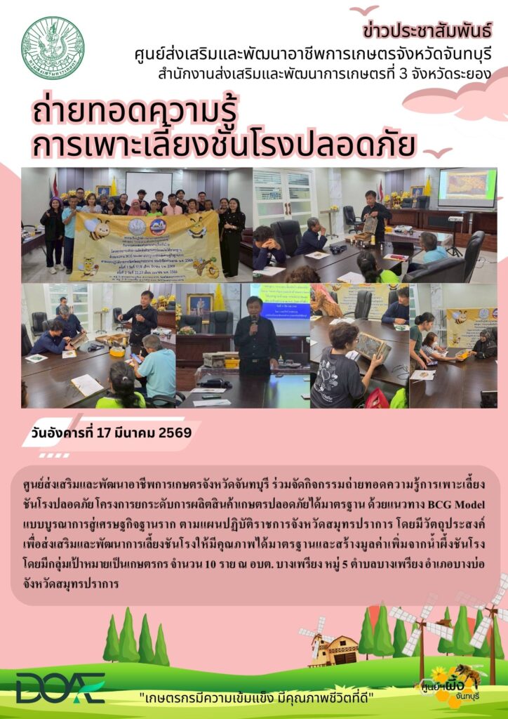 ถ่ายทอดองค์ความรู้ ส่งเสริมและพัฒนาการเลี้ยงชันโรงให้มีคุณภาพได้มาตรฐาน และสร้างมูลค่าเพิ่มจากน้ำผึ้งชันโรง แก่เกษตรกรในพื้นที่ตำบลเปร็ง อำเภอบางบ่อ จังหวัดสมุทรปราการถ่ายทอดองค์ความรู้