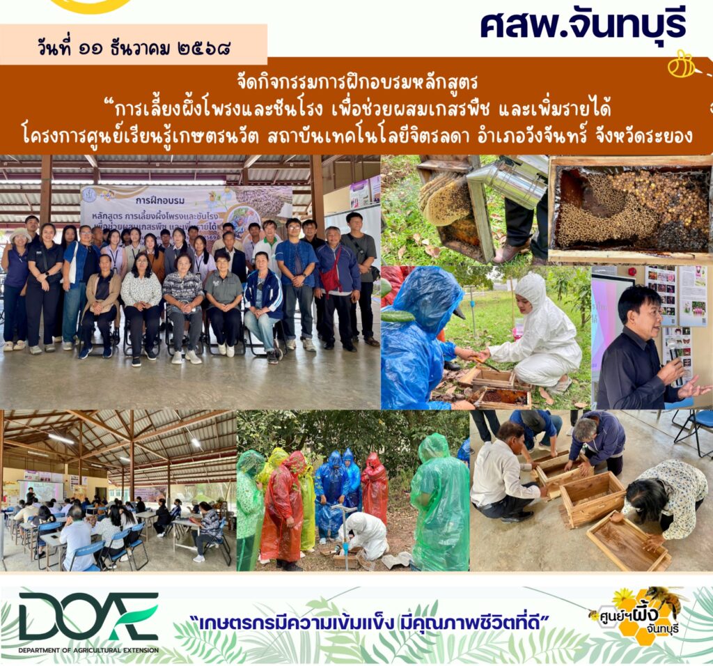 ข่าวประชาสัมพันธ์ 2569ฝึกอบรมหลักสูตร การเลี้ยงผึ้งโรงและชันโรงเพื่อช่วยผสมเกสรพืชและเพิ่มรายได้ โครงการศูนย์เรียนรู้เกษตรนวัต สถาบันเทคโนโลยีจิตรลดา อำเภอวังจันทร์ จังหวัดระยอง 11 ธันวาคม 2025