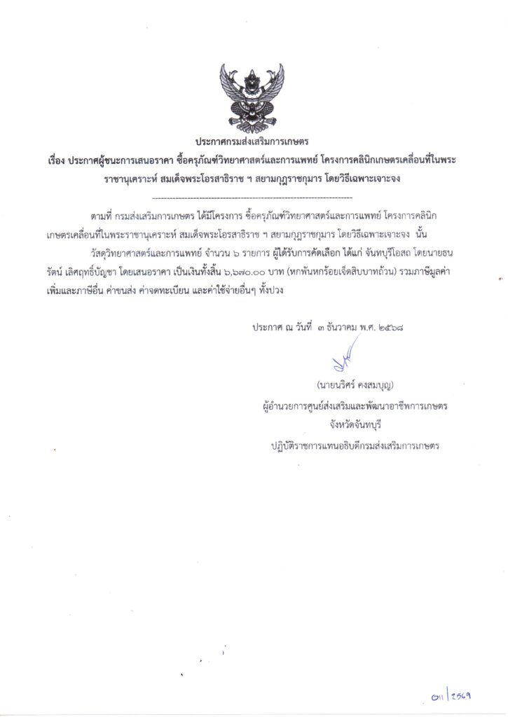 จัดซื้อจัดจ้าง 2569จัดซื้อวัสดุวิทยาศาสตร์และการแพทย์ โครงการคลินิกเกษตรเคลื่อนที่ในพระราชานุเคราะห์ สมเด็จพระโอรสาธิราช ฯ สยามกุฎราชกุมาร โดยวิธีเฉพาะเจาะจง เป็นเงิน 6,670.00 บาท 3 ธันวาคม 2025