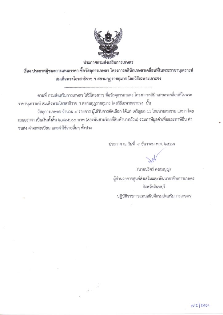 จัดซื้อจัดจ้าง 2569จัดซื้อวัสดุการเกษตร โครงการคลินิกเกษตรเคลื่อนที่ในพระราชานุเคราะห์ สมเด็จพระโอรสาธิราช ฯ สยามกุฎราชกุมาร โดยวิธีเฉพาะเจาะจง เป็นเงิน 2,325.00 บาท 3 ธันวาคม 2025
