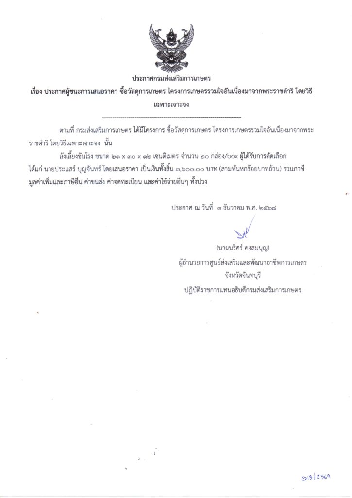 จัดซื้อจัดจ้าง 2569จัดซื้อวัสดุการเกษตร โครงการเกษตรรวมใจอันเนื่องมาจากพระราชดำริ โดยวิธีเฉพาะเจาะจง เป็นเงิน 3,600.00 บาท 3 ธันวาคม 2025