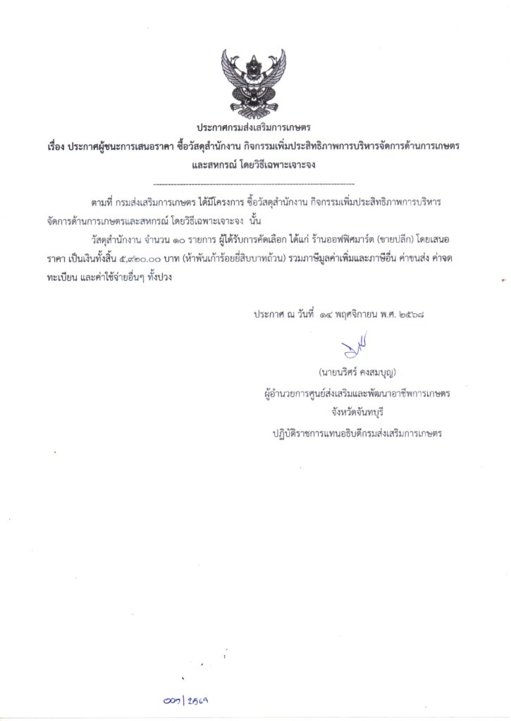จัดซื้อจัดจ้าง 2569จัดซื้อวัสดุสำนักงาน กิจกรรมเพิ่มประสิทธิภาพการบริหารจัดการด้านการเกษตรและสหกรณ์ โดยวิธีเฉพาะเจาะจง เป็นเงิน 5,920.00 บาท 14 พฤศจิกายน 2025