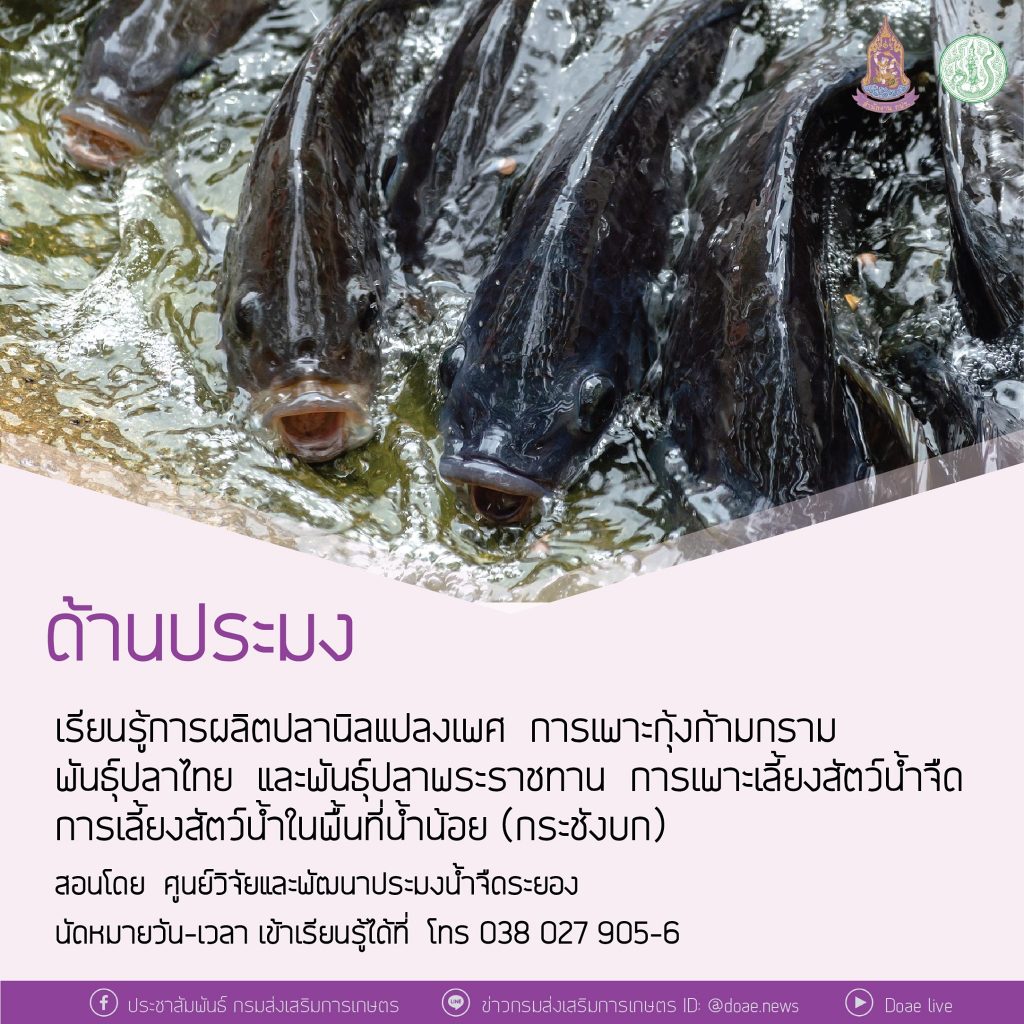 ด้านประมง หน่วยงานที่รับผิดชอบ ศูนย์วิจัยและพัฒนาประมงน้ำจืดจังหวัดระยอง