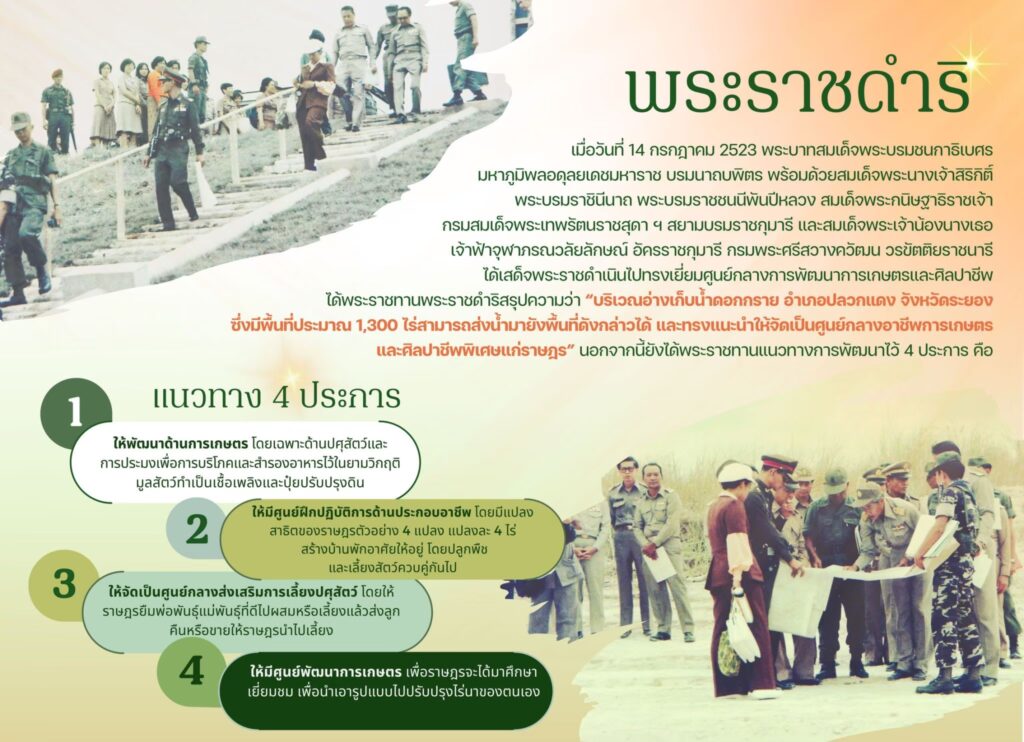 4) ให้มีศูนย์พัฒนาการเกษตร เพื่อให้ราชษฎรจะได้มาศึกษาและเยี่ยมชม