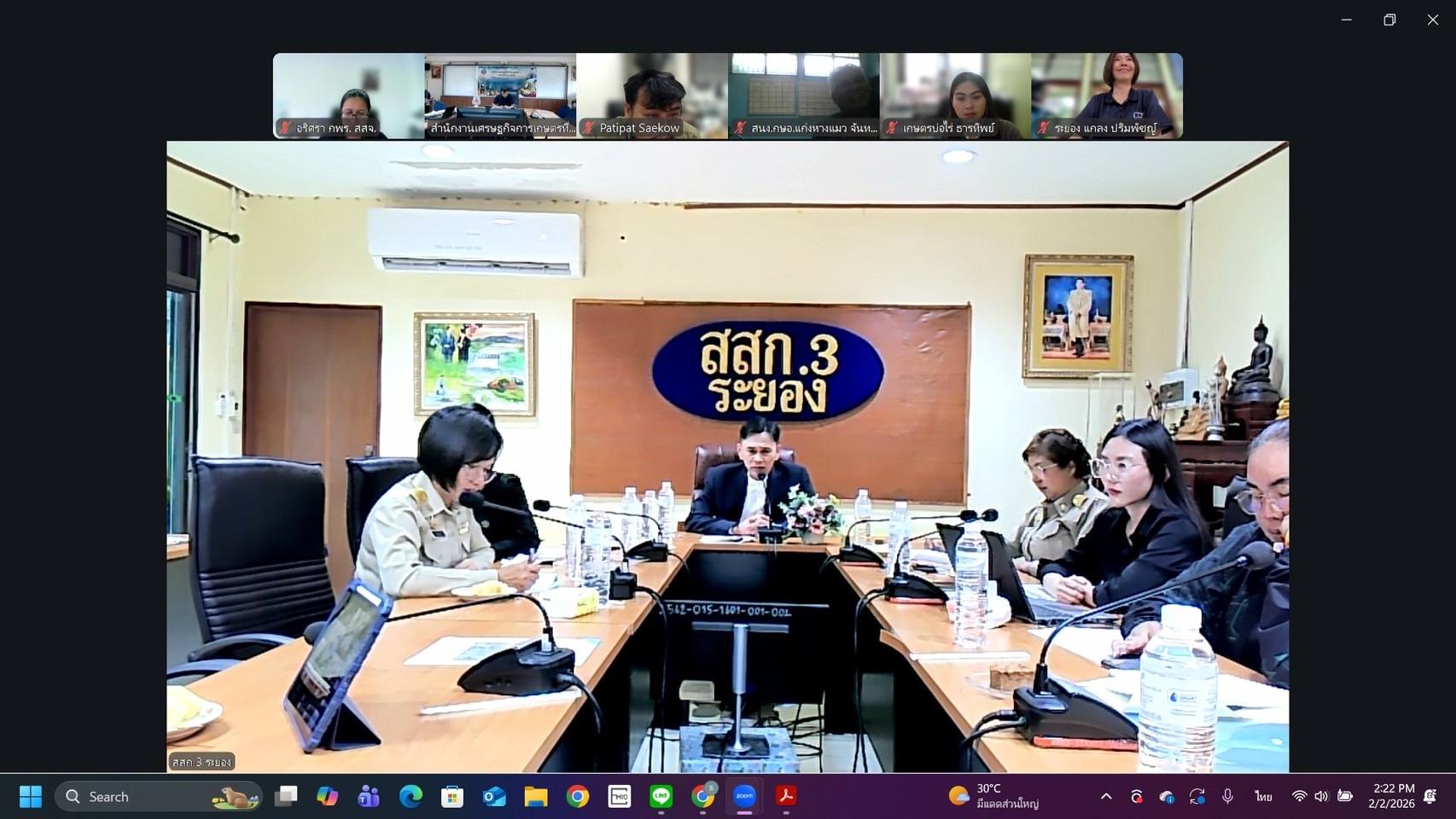 📌 วันที่ 2 กุมภาพันธ์ 2569 นายปัญญา ประดิษฐสาร ผู้อำนวยการสำนักงานส่งเสริมและพัฒนาการเกษตรที่ 3 จังหวัดระยอง พร้อมกับเจ้าหน้าที่กลุ่มส่งเสริมและพัฒนาการผลิต จัดประชุมจัดทำข้อมูลเอกภาพด้านการผลิตและการตลาดของสับปะรดภาคตะวันออก ณ ห้องประชุมสำนักงานส่งเสริมและพัฒนาการเกษตรที่ 3 จังหวัดระยอง อำเภอเมืองระยอง จังหวัดระยอง ผ่านระบบออนไลน์ (Zoom Meeting)