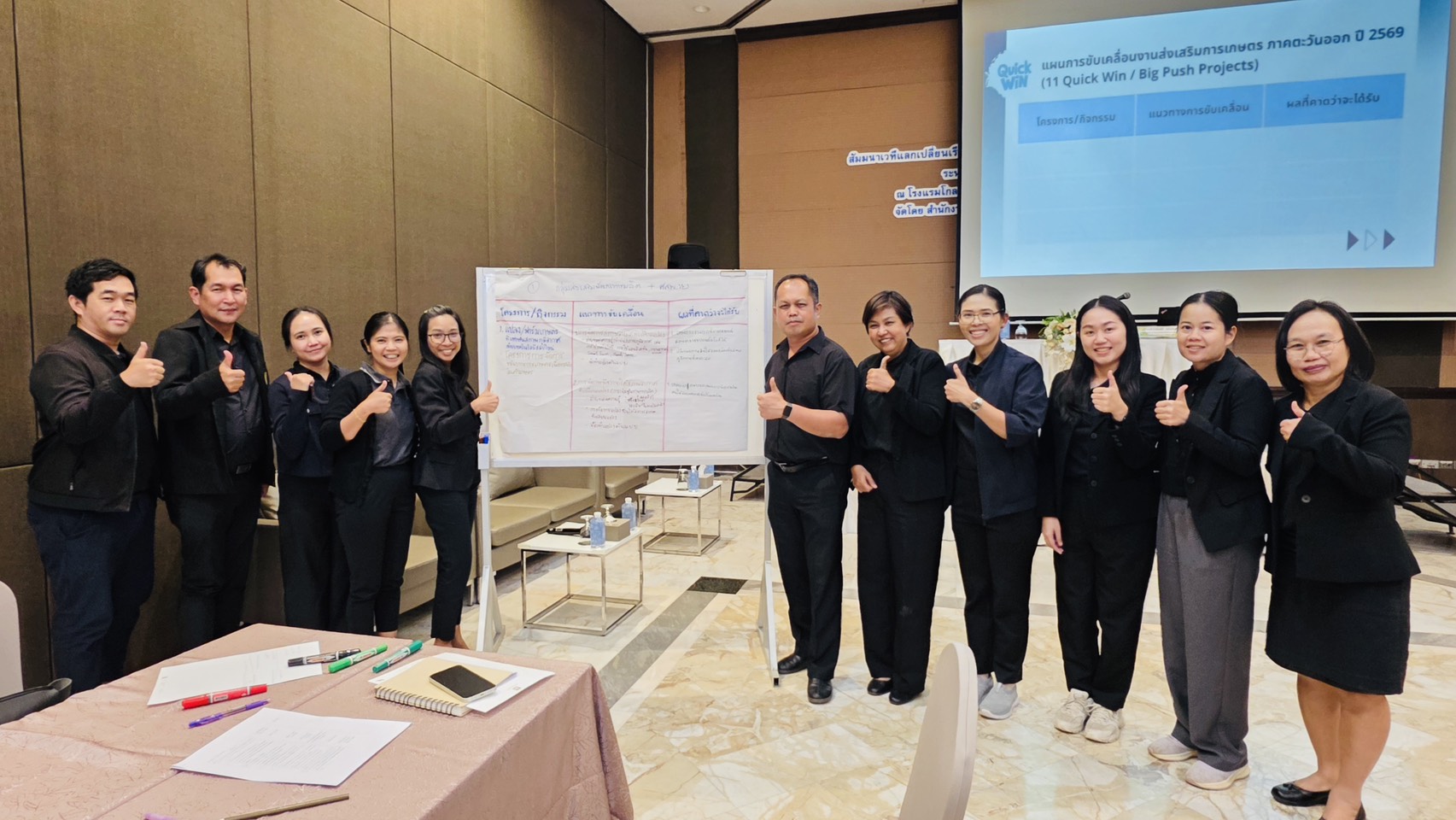 1. การแบ่งกลุ่ม เพื่อจัดทำแผนการขับเคลื่อนงานส่งเสริมการเกษตร ภาคตะวันออก ปี 2569 ภายใต้นโยบายการขับเคลื่อนงานกระทรวงเกษตรและสหกรณ์ 11 Quick Win / Big Push Projects