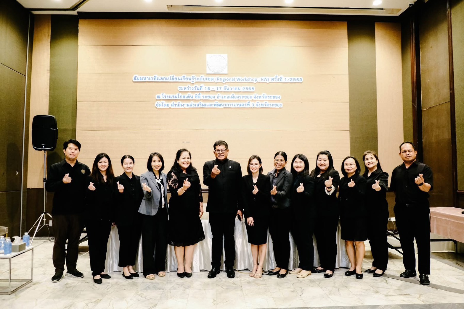 กลุ่มยุทธศาสตร์และสารสนเทศ สำนักงานส่งเสริมและพัฒนาการเกษตรที่ 3 จังหวัดระยอง จัดสัมมนาเวทีแลกเปลี่ยนเรียนรู้ระดับเขต (Regional Workshop : RW) ครั้งที่ 1/2569 ระหว่างวันที่ 16 – 17 ธันวาคม 2568 โรงแรมโกลเด้น ซิตี้ ระยอง อำเภอเมืองระยอง จังหวัดระยอง โดยมีวัตถุประสงค์เพื่อให้เจ้าหน้าที่ส่งเสริมการเกษตรของเขต จังหวัด และศูนย์ปฏิบัติการ มีเวทีในการแลกเปลี่ยนเรียนรู้ชี้แจงทำความเข้าใจ การเสนอผลงาน การแก้ไขปัญหาต่างๆ และการวางแผนพัฒนาการดำเนินงานให้มีความพร้อมในการถ่ายทอดความรู้ และให้บริการทางการเกษตรแก่เกษตรกร บุคคลเป้าหมาย ประกอบด้วย หัวหน้ากลุ่ม หรือผู้แทน ทั้ง 9 จังหวัด ผู้อำนวยการศูนย์ปฏิบัติการ หรือผู้แทน ทั้ง 4 ศูนย์ ผู้อำนวยการกลุ่ม 4 กลุ่ม ของ สสก. 3 รย. และผู้ที่เกี่ยวข้อง รวมทั้งสิ้น 52 คน