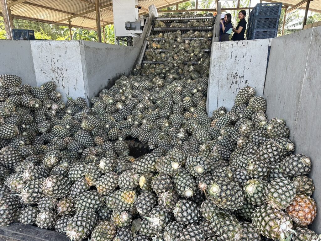 วันที่ 7 – 8 ธันวาคม 2568 นายภาสกร ใจแจ่ม นักวิชาการเกษตรชำนาญการ และนางสาวสุภาพร พานสัมฤทธิ์ นักวิชาการส่งเสริมการเกษตร กลุ่มส่งเสริมและพัฒนาการผลิต ลงพื้นที่จังหวัดระยอง เพื่อติดตามสถานการณ์ราคาสับปะรดจังหวัดระยอง ร่วมกับสำนักงานเกษตรจังหวัดระยอง ณ แผงรับซื้อสับปะรดเปรมใจ-โถทอง ตำบลบางบุตร อำเภอบ้านค่าย และสเตชั่นรับซื้อของบริษัทไพร์มโปรดักซ์ จำกัด ตำบลปากแพรก อำเภอปลวกแดง จังหวัดระยอง