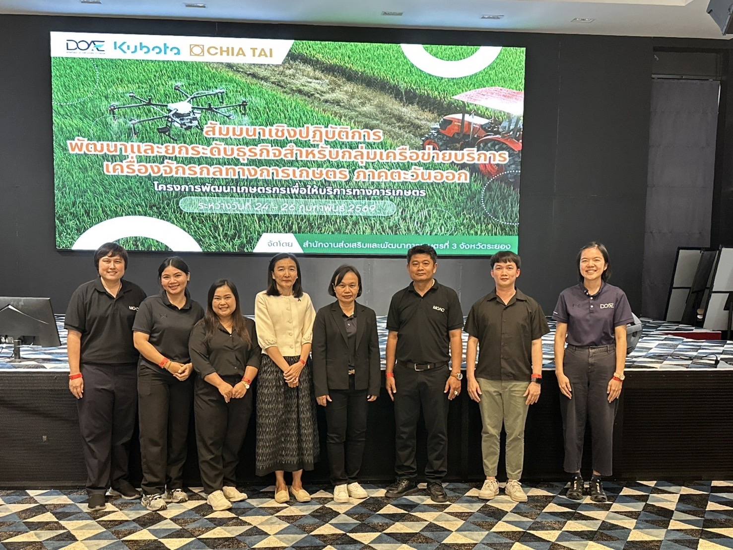 นายปัญญา ประดิษฐสาร ผู้อำนวยการสำนักงานส่งเสริมและพัฒนาการเกษตรที่ 3 จังหวัดระยอง พร้อมด้วยเจ้าหน้าที่กลุ่มส่งเสริมและพัฒนาการผลิต จัดสัมมนาเชิงปฏิบัติการพัฒนาและยกระดับธุรกิจสำหรับกลุ่มเครือข่ายบริการเครื่องจักรกลทางการเกษตร (Agricultural Service Provider: ASP) ภาคตะวันออก ประจำปี 2569 ระหว่างวันที่ 24 – 26 กุมภาพันธ์ 2569 เพื่อขับเคลื่อนเกษตรกรไทยจาก “ผู้ใช้” สู่ “ผู้ให้บริการธุรกิจเกษตรสมัยใหม่”