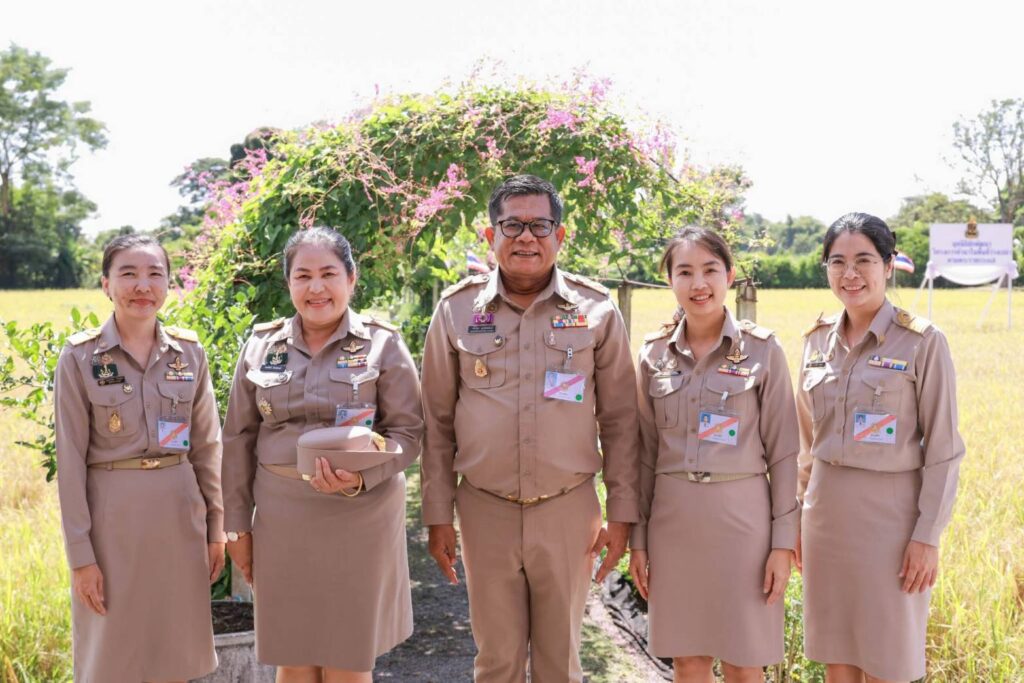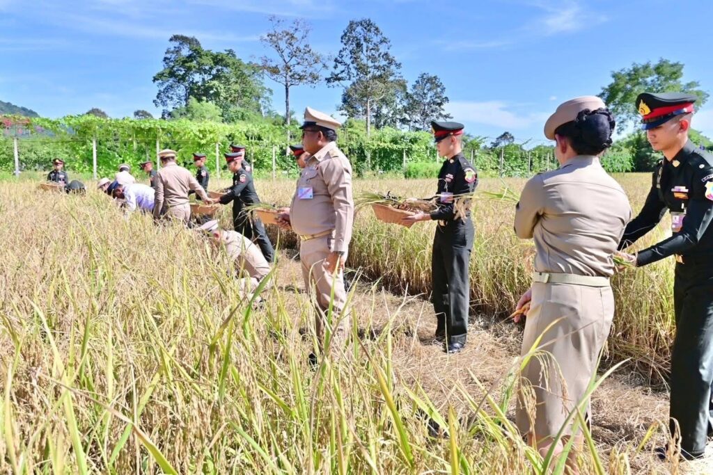 ในการนี้ รองอธิบดีกรมส่งเสริมการเกษตรได้ลงแปลงสาธิตการเกษตร เกี่ยวข้าวพันธ์ุ กข 99 ร่วมกับนักเรียนนายร้อย โรงเรียนนายร้อยพระจุลจอมเกล้า
