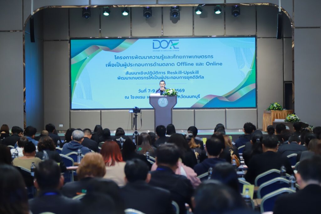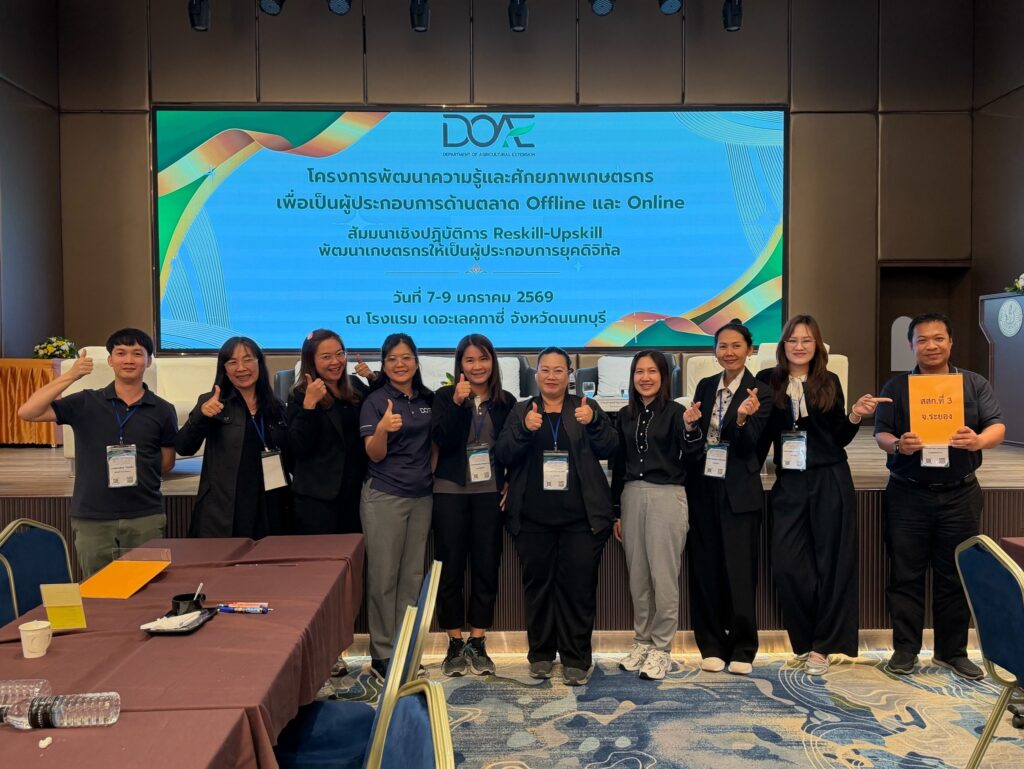 วันที่ 7 – 9 มกราคม 2569 นายภาสกร ใจแจ่ม นักวิชาการเกษตรชำนาญการ กลุ่มส่งเสริมและพัฒนาการผลิต เข้าร่วมโครงการพัฒนาความรู้และศักยภาพเกษตรกร เพื่อเป็นผู้ประกอบการด้านตลาด Offline และ Online หลักสูตร สัมมนาเชิงปฏิบัติการ Reskill – Upskill พัฒนาเกษตรกรให้เป็นผู้ประกอบการยุคดิจิตัล โดยได้รับความรู้ ในเรื่อง แนวทางการจัดทำแผนธุรกิจ และพัฒนาผู้จัดการตลาด ในการบริหารจัดการสินค้าเกษตรเชิงธุรกิจแบบครบวงจร, การถอดบทเรียนการบริหารจัดการตลาดเกษตรกรต้นแบบ, พลิกโฉมวงการตลาดเกษตรกรการออกแบบบรรจุภัณฑจากธรรมชาติสู่ Eco-Packaging, Leader for Tomorrow พัฒนาศักยภาพผู้นำเพื่อขับเคลื่อนงานภาคการเกษตร, การพัฒนาธุรกิจเกษตรสอดรับกับการปรับตัวต่อผลกระทบจากสภาพอากาศที่เปลี่ยนแปลง, โมเดลเศรษฐกิจสู่การพัฒนาที่ยั่งยืนและเทคนิคการเจรจากับลูกค้า ณ โรงแรม เดอะ เล็คกาซี่ ตำบลบางกระสอ อำเภอเมืองนนทบุรี จังหวัดนนทบุรี