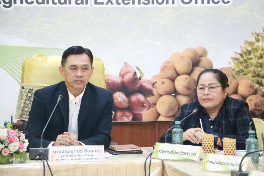 วันที่ 9 กุมภาพันธ์ 2569 นายปัญญา ประดิษฐสาร ผู้อำนวยการสำนักงานส่งเสริมและพัฒนาการเกษตรที่ 3 จังหวัดระยอง พร้อมด้วยคณะทำงานกำกับ ติดตามและประเมินผล ประจำปีงบประมาณ 2569 ติดตามงานระบบส่งเสริมการเกษตรครั้งที่ 1/2569 ณ สำนักงานเกษตรจังหวัดตราด เพื่อติดตาม ขับเคลื่อนการดำเนินงานตามประเด็นเร่งรัด และงานโครงการฯ ของกรมส่งเสริมการเกษตร ปัญหา อุปสรรค แลกเปลี่ยนให้ข้อแนะนำ ในการดำเนินงาน และติดตามการดำเนินโครงการส่งเสริมเกษตรแบบแปลงใหญ่ เพื่อปรับเพิ่มประสิทธิภาพการผลิต ณ แปลงใหญ่มะพร้าวตำบลหนองคันทรง อำเภอเมืองตราด ซึ่งเป็นศูนย์จัดการศัตรูพืชชุมชน ตำบลหนองคันทรง และ ศูนย์เพิ่มประสิทธิภาพการผลิต ตำบลหนองคันทรง (เครือข่าย) ดำเนินกิจกรรมการผลิตมะพร้าวคุณภาพ และผลิตแตนเบียนบราคอนไว้ใช้ในกลุ่มและจำหน่ายให้กับเกษตรกรผู้สนใจทั้งภายในและภายนอกอำเภอ
