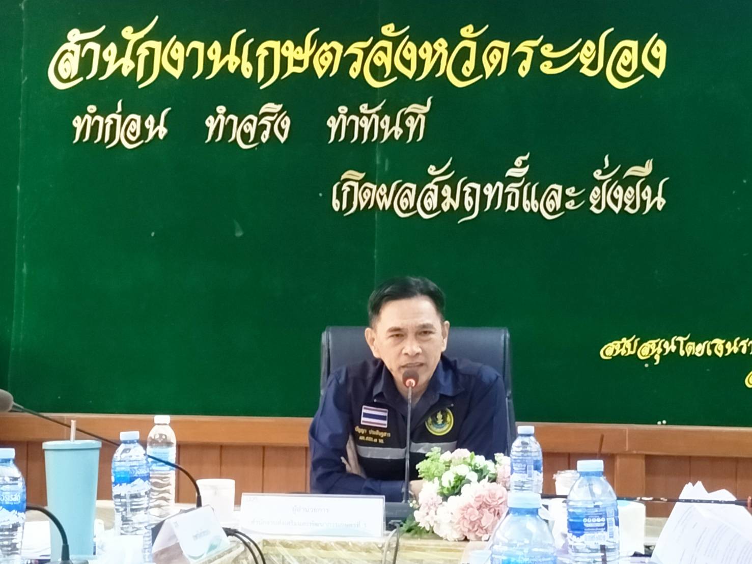 วันที่ 10 กุมภาพันธ์ 2569 นายปัญญา ประดิษฐสาร ผู้อำนวยการสำนักงานส่งเสริมและพัฒนาการเกษตรที่ 3 จังหวัดระยอง พร้อมด้วยคณะทำงานกำกับ ติดตามและประเมินผล ประจำปีงบประมาณ 2569 ติดตามงานระบบส่งเสริมการเกษตรครั้งที่ 1/2569 ณ สำนักงานเกษตรจังหวัดระยอง เพื่อติดตามและขับเคลื่อนการดำเนินงานตามประเด็นเร่งรัด และงานโครงการฯ ของกรมส่งเสริมการเกษตร รับฟังปัญหา อุปสรรค แลกเปลี่ยนให้ข้อเสนอแนะในการดำเนินงาน และช่วงบ่ายติดตามการดำเนินโครงการส่งเสริมเกษตรแบบแปลงใหญ่ เพื่อปรับเพิ่มประสิทธิภาพการผลิต ณ แปลงใหญ่ทุเรียนบ้านเขาหินแท่น ตำบลวังจันทร์ อำเภอวังจันทร์ จังหวัดระยอง ซึ่งดำเนินกิจกรรมผลิตและจำหน่ายทุเรียนคุณภาพ นำเทคโนลียีระบบน้ำอัจฉริยะ (IOT) มาใช้ในการจัดการสวนทุเรียน พร้อมทั้งพบปะพูดคุยกับสมาชิกแปลงใหญ่ฯ แลกเปลี่ยนข้อคิดเห็นแนวทางในการพัฒนาผลผลิตและการจัดการสวนทุเรียน ให้มีประสิทธิภาพยิ่งขึ้น