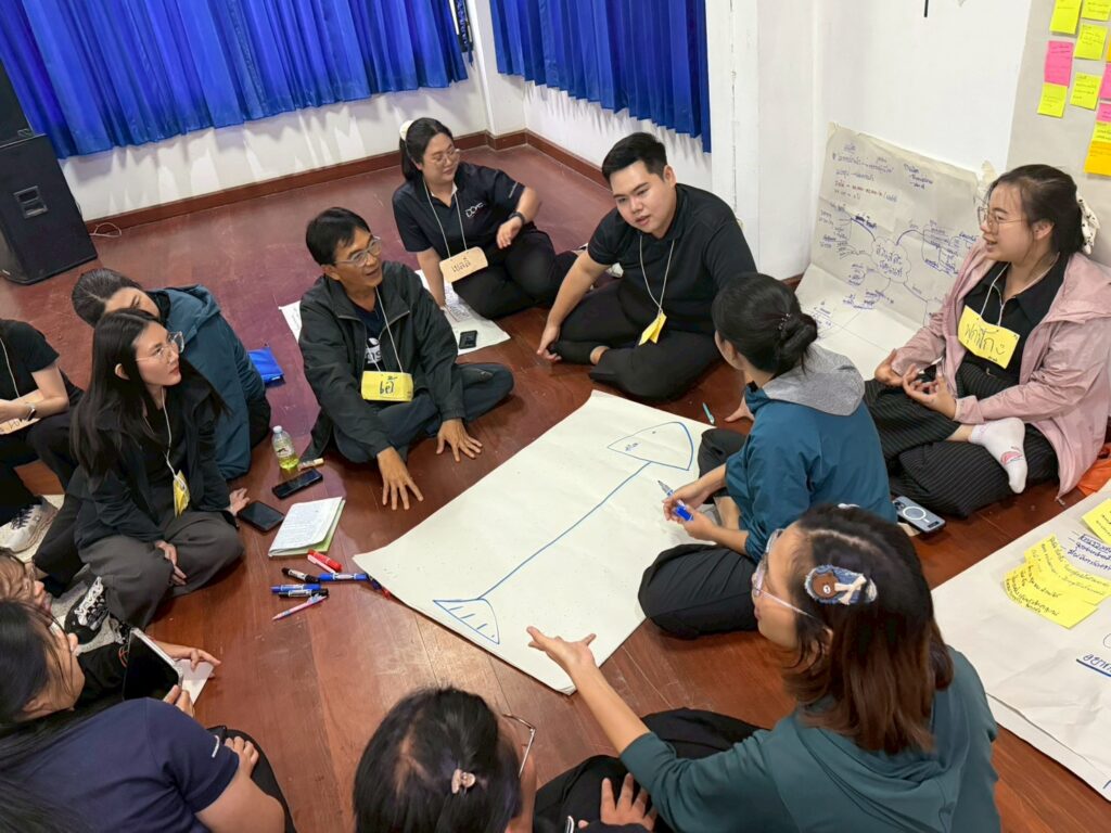 • วันที่ 3 ลงพื้นที่ฝึกปฏิบัติการจัดเวทีชุมชนแบบมีส่วนร่วม (Learning by Doing) และแลกเปลี่ยนเรียนรู้จากการปฏิบัติงานจริง รับฟังเสียงสะท้อนจากพี่เลี้ยงและทีมผ่านกระบวนการ AAR