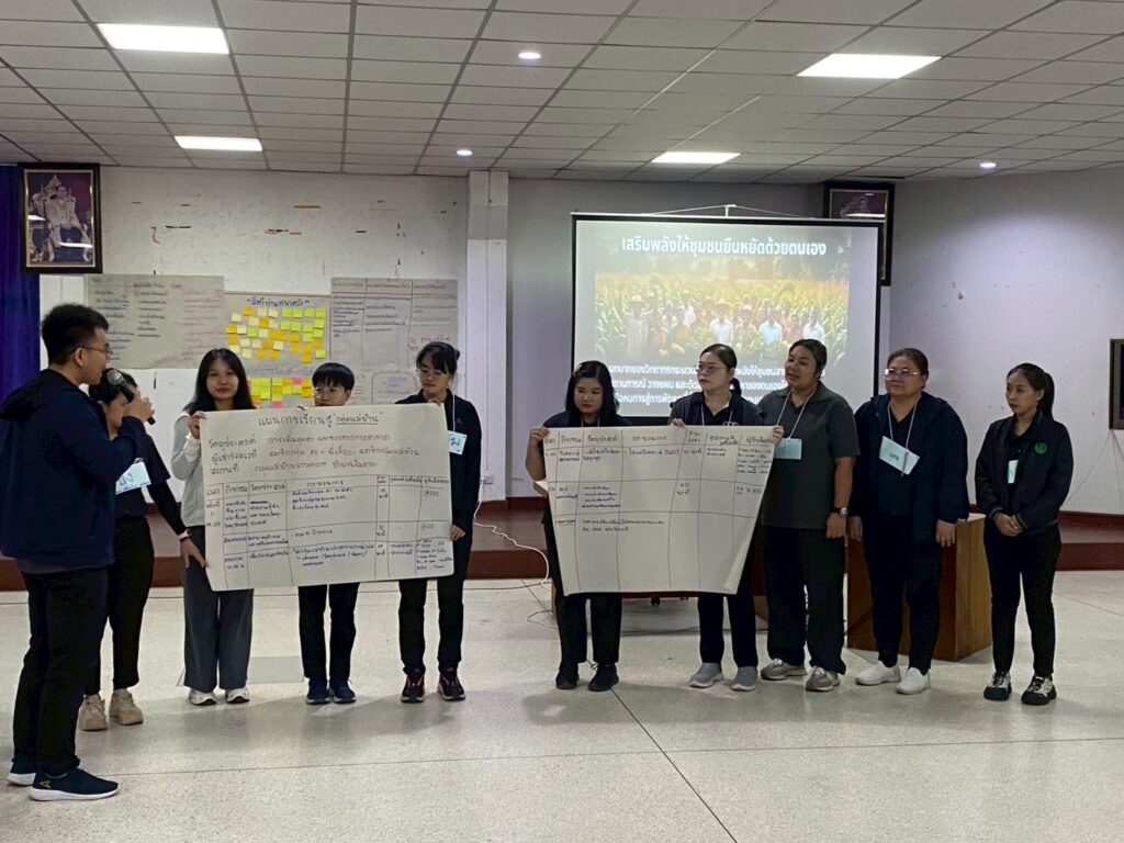 • วันที่ 4 การวิเคราะห์ข้อมูลเพื่อจัดทำแผนพัฒนาการเกษตรแบบมีส่วนร่วม การวิเคราะห์งานเพื่อกำหนดโจทย์ในการทำ R2R และสรุปบทเรียนจากการอบรม