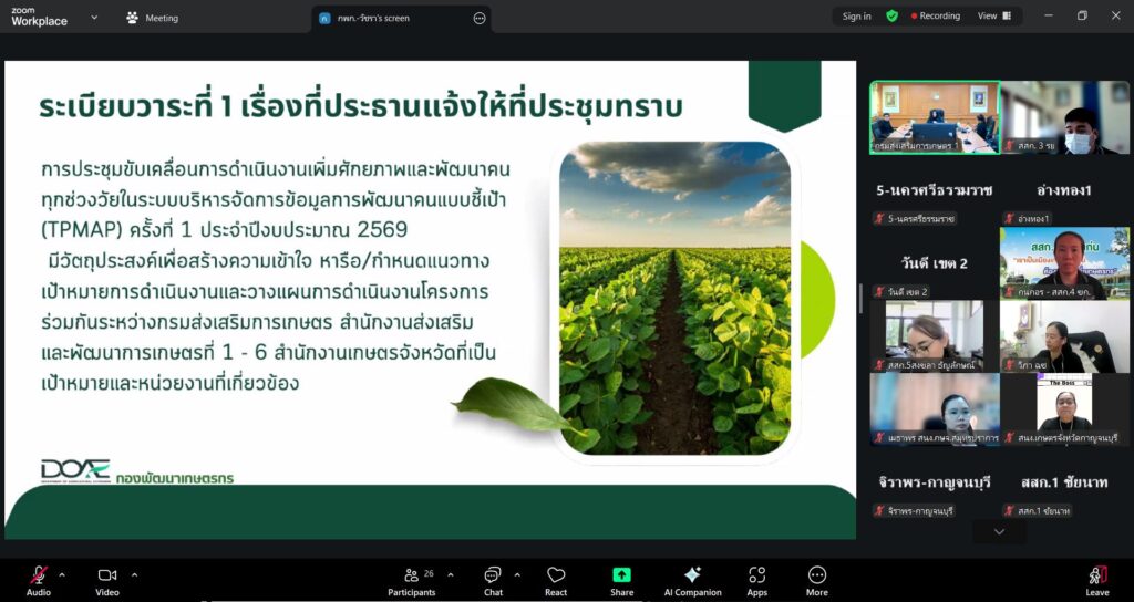 เกษตรภาคตะวันออก ร่วมการประชุมขับเคลื่อนการดำเนินงานเพิ่มศักยภาพและพัฒนาคนทุกช่วงวัยในระบบบริหารจัดการข้อมูลการพัฒนาคนแบบชี้เป้า (TPMAP) (ส่วนกลาง) ครั้งที่ 1 ปีงบประมาณ 2569